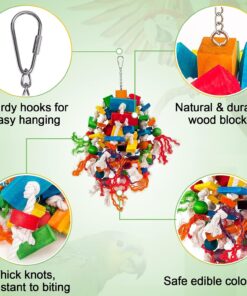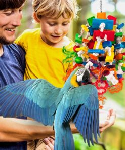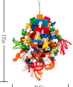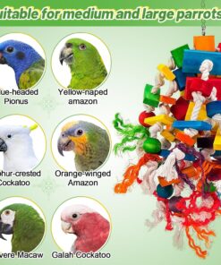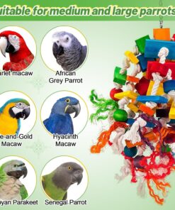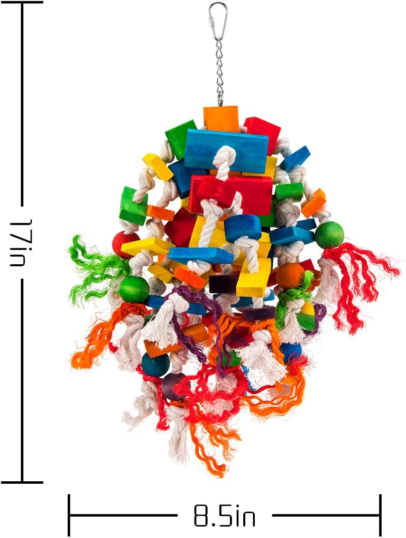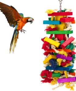 Large Parrot Toy – Multicolored Natural Wood Blocks Tearing Toys for Birds Suggested for African Grey, Macaw and Amazon Parrots